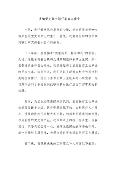 / 【七哥公文】2024年:乡镇党支部书记任职表态发言+更多免费公文+VX:QiGeGongWen2024