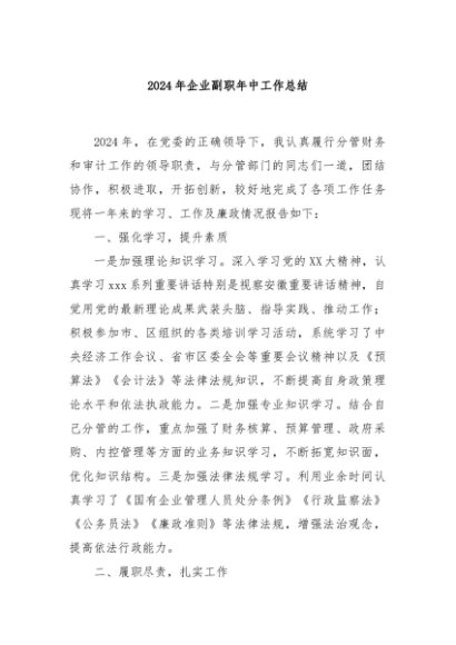 / 【七哥公文】2024年:2024年企业副职年中工作总结+更多免费公文+VX:QiGeGongWen2024