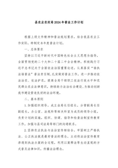 / 【七哥公文】2024年:县农业农村局2024年普法工作计划+更多免费公文+VX:QiGeGongWen2024