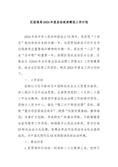/ 【七哥公文】2024年:区医保局2024年度法治政府建设工作计划+更多免费公文+VX:QiGeGongWen2024