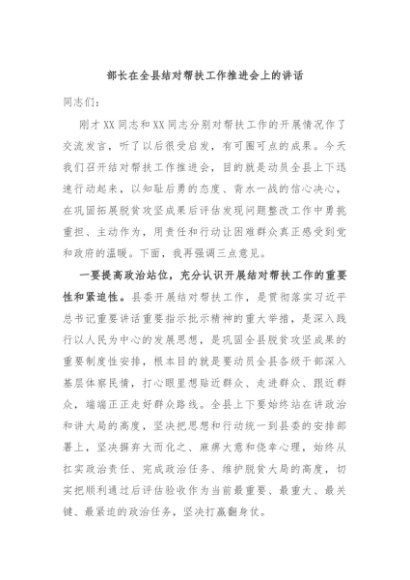 / 【七哥公文】2024年:部长在全县结对帮扶工作推进会上的讲话+更多免费公文+VX:QiGeGongWen2024