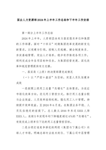 【七哥公文】2024年:国企人力资源部2024年上半年工作总结和下半年工作安排+更多免费公文+VX:QiGeGongWen2024