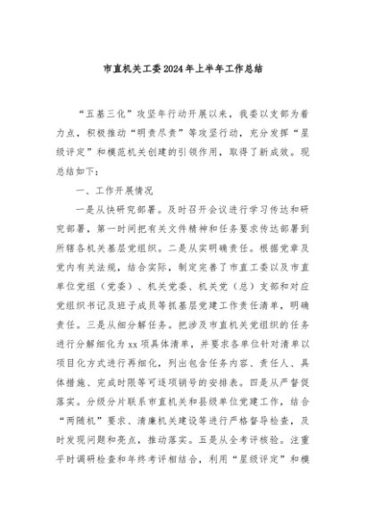 / 【七哥公文】2024年:市直机关工委2024年上半年工作总结+更多免费公文+VX:QiGeGongWen2024