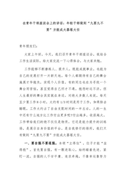 【七哥公文】2024年:在青年干部座谈会上的讲话:年轻干部做到“九要九不要”方能成大器堪大任+更多免费公文+VX:QiGeGongWen2024