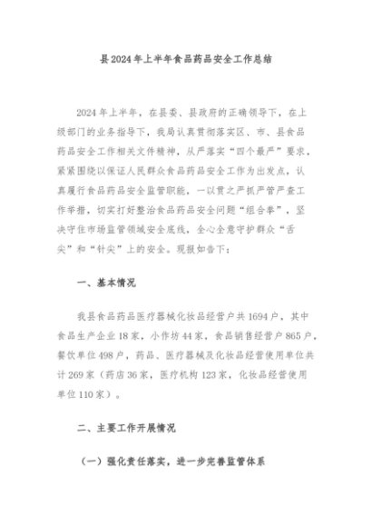 / 【七哥公文】2024年:县2024年上半年食品药品安全工作总结 (1)+更多免费公文+VX:QiGeGongWen2024