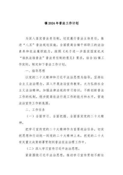 【七哥公文】2024年:镇2024年普法工作计划+更多免费公文+VX:QiGeGongWen2024
