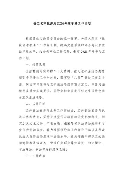 / 【七哥公文】2024年:县文化和旅游局2024年度普法工作计划+更多免费公文+VX:QiGeGongWen2024