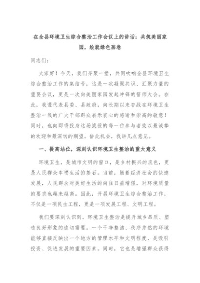 【七哥公文】2024年:在全县环境卫生综合整治工作会议上的讲话:共筑美丽家园,绘就绿色画卷+更多免费公文+VX:QiGeGongWen2024