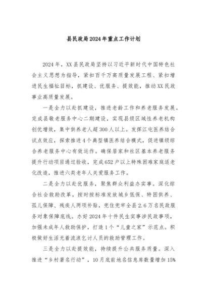 / 【七哥公文】2024年:县民政局2024年重点工作计划+更多免费公文+VX:QiGeGongWen2024