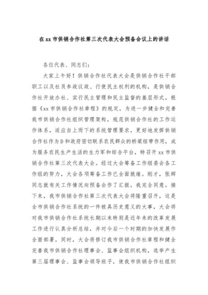 / 【七哥公文】2024年:在xx市供销合作社第三次代表大会预备会议上的讲话+更多免费公文+VX:QiGeGongWen2024