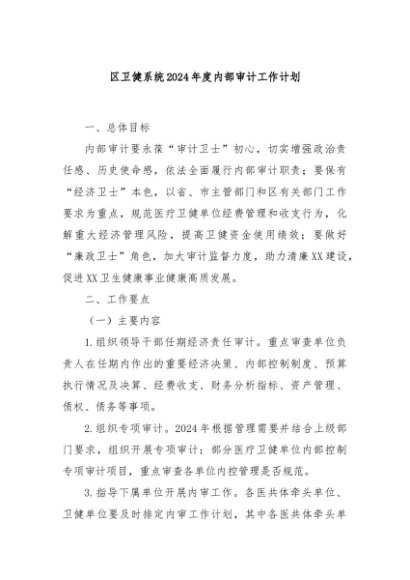 【七哥公文】2024年:区卫健系统2024年度内部审计工作计划+更多免费公文+VX:QiGeGongWen2024