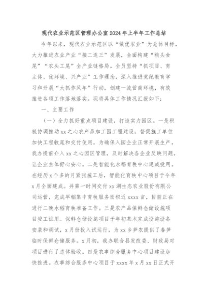 / 【七哥公文】2024年:现代农业示范区管理办公室2024年上半年工作总结+更多免费公文+VX:QiGeGongWen2024