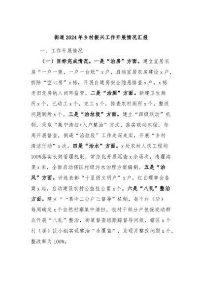 / 【七哥公文】2024年:街道2024年乡村振兴工作开展情况汇报+更多免费公文+VX:QiGeGongWen2024