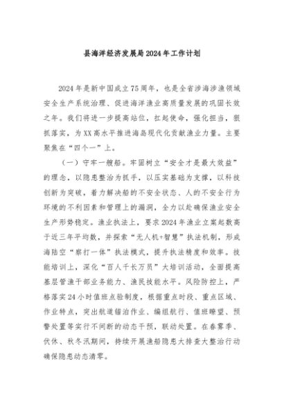 / 【七哥公文】2024年:县海洋经济发展局2024年工作计划+更多免费公文+VX:QiGeGongWen2024