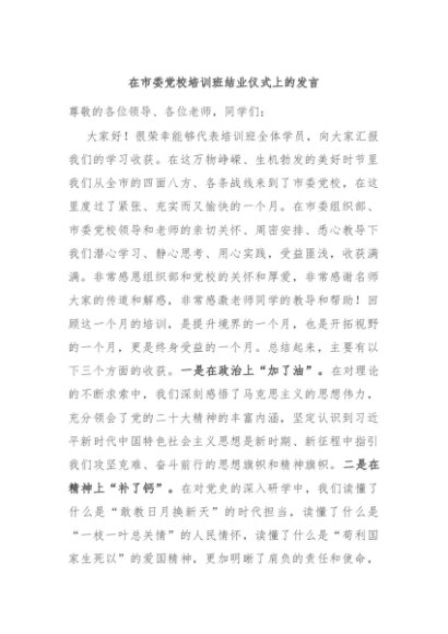 / 【七哥公文】2024年:在市委党校培训班结业仪式上的发言+更多免费公文+VX:QiGeGongWen2024