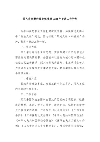 / 【七哥公文】2024年:县人力资源和社会保障局2024年普法工作计划+更多免费公文+VX:QiGeGongWen2024