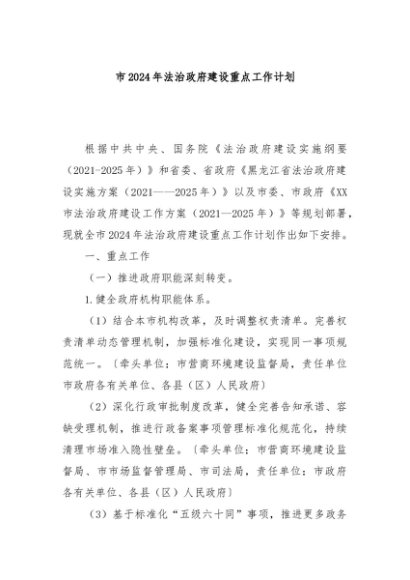 / 【七哥公文】2024年:市2024年法治政府建设重点工作计划+更多免费公文+VX:QiGeGongWen2024