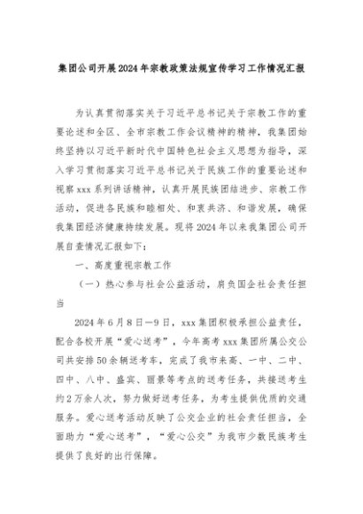 【七哥公文】2024年:集团公司开展2024年宗教政策法规宣传学习工作情况汇报+更多免费公文+VX:QiGeGongWen2024