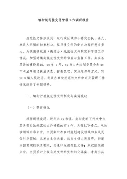 / 【七哥公文】2024年:镇街规范性文件管理工作调研报告+更多免费公文+VX:QiGeGongWen2024