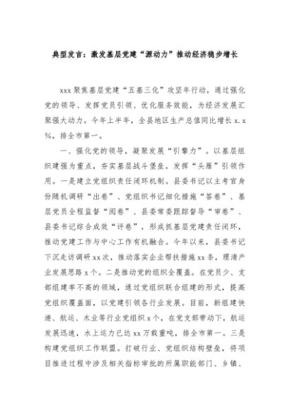 / 【七哥公文】2024年:典型发言:激发基层党建“源动力”推动经济稳步增长+更多免费公文+VX:QiGeGongWen2024