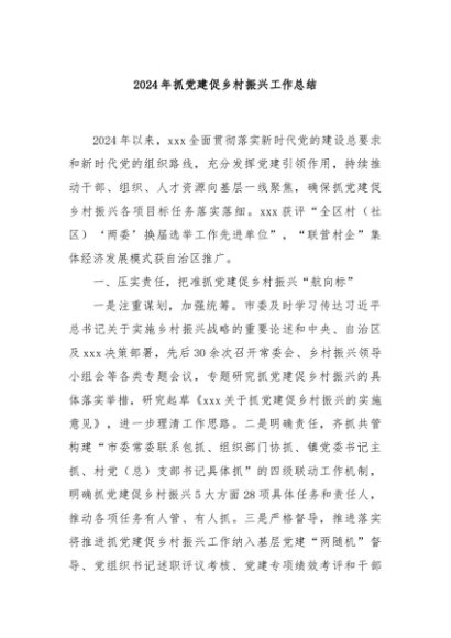 / 【七哥公文】2024年:2024年抓党建促乡村振兴工作总结+更多免费公文+VX:QiGeGongWen2024