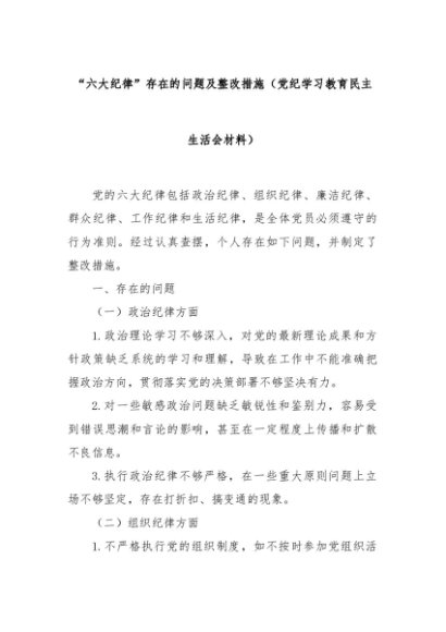 【七哥公文】2024年:“六大纪律”存在的问题及整改措施(党纪学习教育民主生活会材料)+更多免费公文+VX:QiGeGongWen2024
