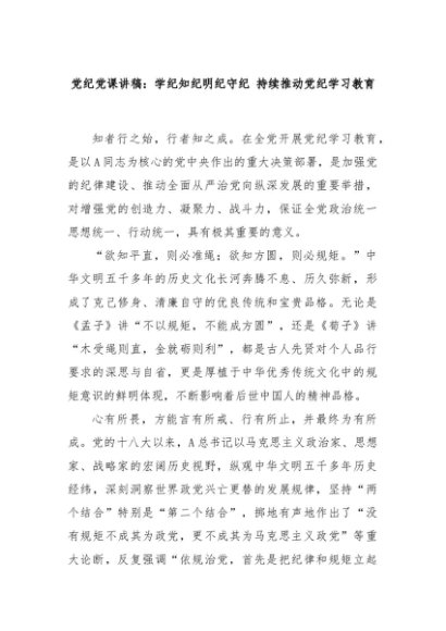 【七哥公文】2024年:党纪党课讲稿:学纪知纪明纪守纪 持续推动党纪学习教育+更多免费公文+VX:QiGeGongWen2024