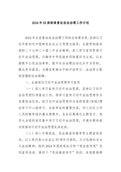 【七哥公文】2024年:2024年XX街街道普法依法治理工作计划+更多免费公文+VX:QiGeGongWen2024