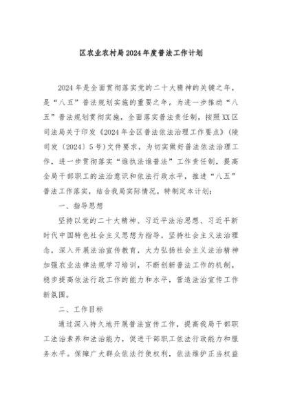 / 【七哥公文】2024年:区农业农村局2024年度普法工作计划+更多免费公文+VX:QiGeGongWen2024