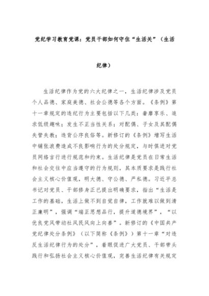 【七哥公文】2024年:党纪学习教育党课:党员干部如何守住“生活关”(生活纪律)+更多免费公文+VX:QiGeGongWen2024