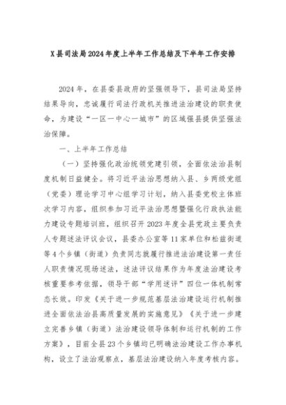 【七哥公文】2024年:X县司法局2024年度上半年工作总结及下半年工作安排+更多免费公文+VX:QiGeGongWen2024