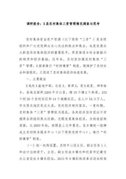 / 【七哥公文】2024年:调研报告:X县农村集体三资管理情况调查与思考+更多免费公文+VX:QiGeGongWen2024