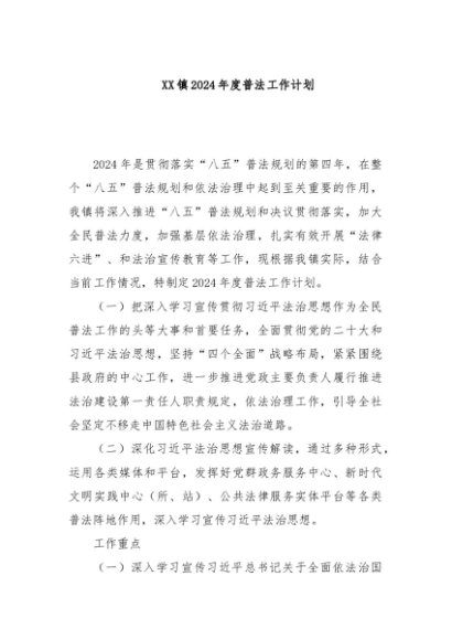 / 【七哥公文】2024年:XX镇2024年度普法工作计划+更多免费公文+VX:QiGeGongWen2024