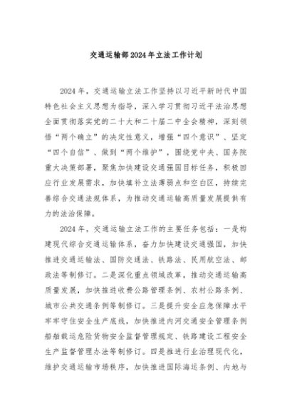/ 【七哥公文】2024年:交通运输部2024年立法工作计划+更多免费公文+VX:QiGeGongWen2024