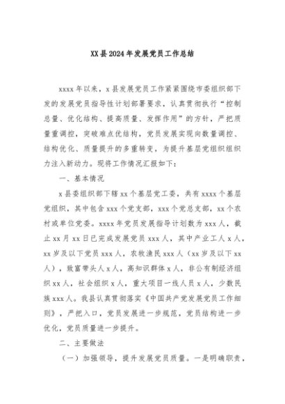 / 【七哥公文】2024年:XX县2024年发展党员工作总结+更多免费公文+VX:QiGeGongWen2024
