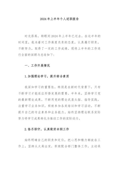 / 【七哥公文】2024年:2024年上半年个人述职报告+更多免费公文+VX:QiGeGongWen2024