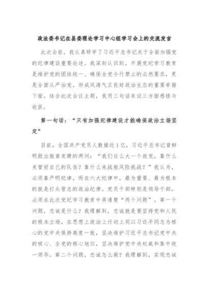 / 【七哥公文】2024年:政法委书记在县委理论学习中心组学习会上的交流发言+更多免费公文+VX:QiGeGongWen2024