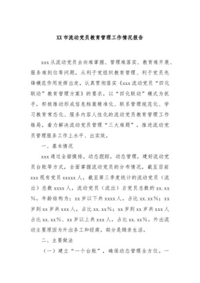 / 【七哥公文】2024年:XX市流动党员教育管理工作情况报告+更多免费公文+VX:QiGeGongWen2024