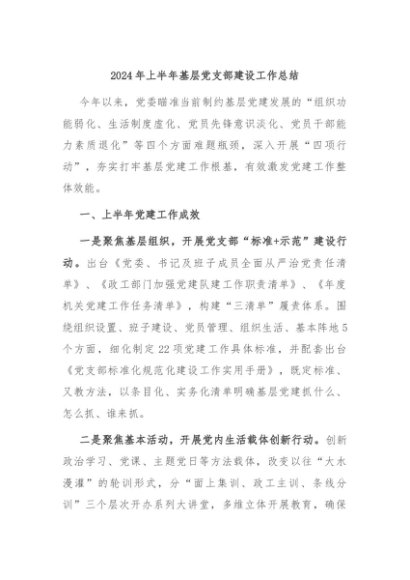 / 【七哥公文】2024年:2024年上半年基层党支部建设工作总结+更多免费公文+VX:QiGeGongWen2024