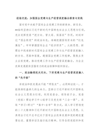 【七哥公文】2024年:经验交流:加强国企党建与生产经营深度融合探索与实践+更多免费公文+VX:QiGeGongWen2024