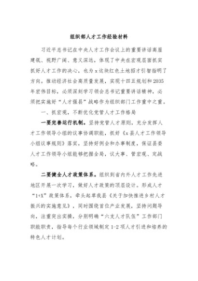 / 【七哥公文】2024年:组织部人才工作经验材料+更多免费公文+VX:QiGeGongWen2024