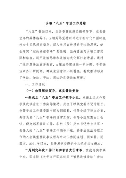 / 【七哥公文】2024年:乡镇“八五”普法工作总结+更多免费公文+VX:QiGeGongWen2024