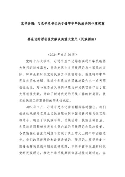 【七哥公文】2024年:党课讲稿:习总书记关于铸牢中华民族共同体意识重要论述的原创性贡献及其重大意义(民族团结)+更多免费公文+VX:QiGeGongWen2024