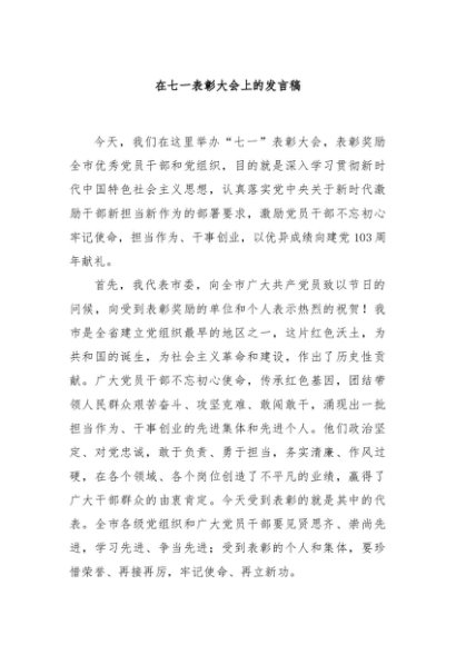/ 【七哥公文】2024年:在七一表彰大会上的发言稿+更多免费公文+VX:QiGeGongWen2024