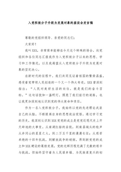/ 【七哥公文】2024年:入党积极分子升级为发展对象的座谈会发言稿+更多免费公文+VX:QiGeGongWen2024