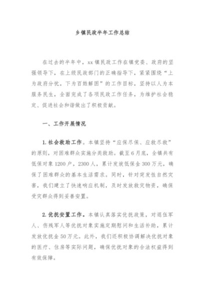 【七哥公文】2024年:乡镇民政半年工作总结+更多免费公文+VX:QiGeGongWen2024