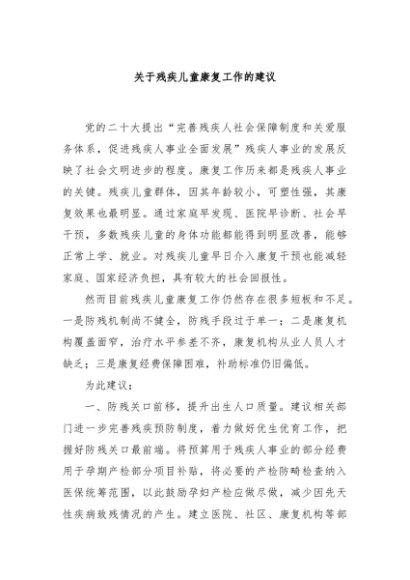/ 【七哥公文】2024年:关于残疾儿童康复工作的建议+更多免费公文+VX:QiGeGongWen2024