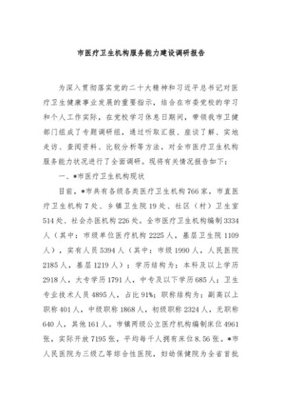 / 【七哥公文】2024年:市医疗卫生机构服务能力建设调研报告+更多免费公文+VX:QiGeGongWen2024