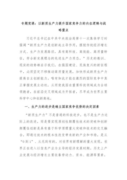 【七哥公文】2024年:专题党课:以新质生产力提升国家竞争力的内在逻辑与战略重点+更多免费公文+VX:QiGeGongWen2024