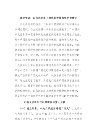 / 【七哥公文】2024年:廉政党课:以永远在路上的执着持续加强纪律建设+更多免费公文+VX:QiGeGongWen2024